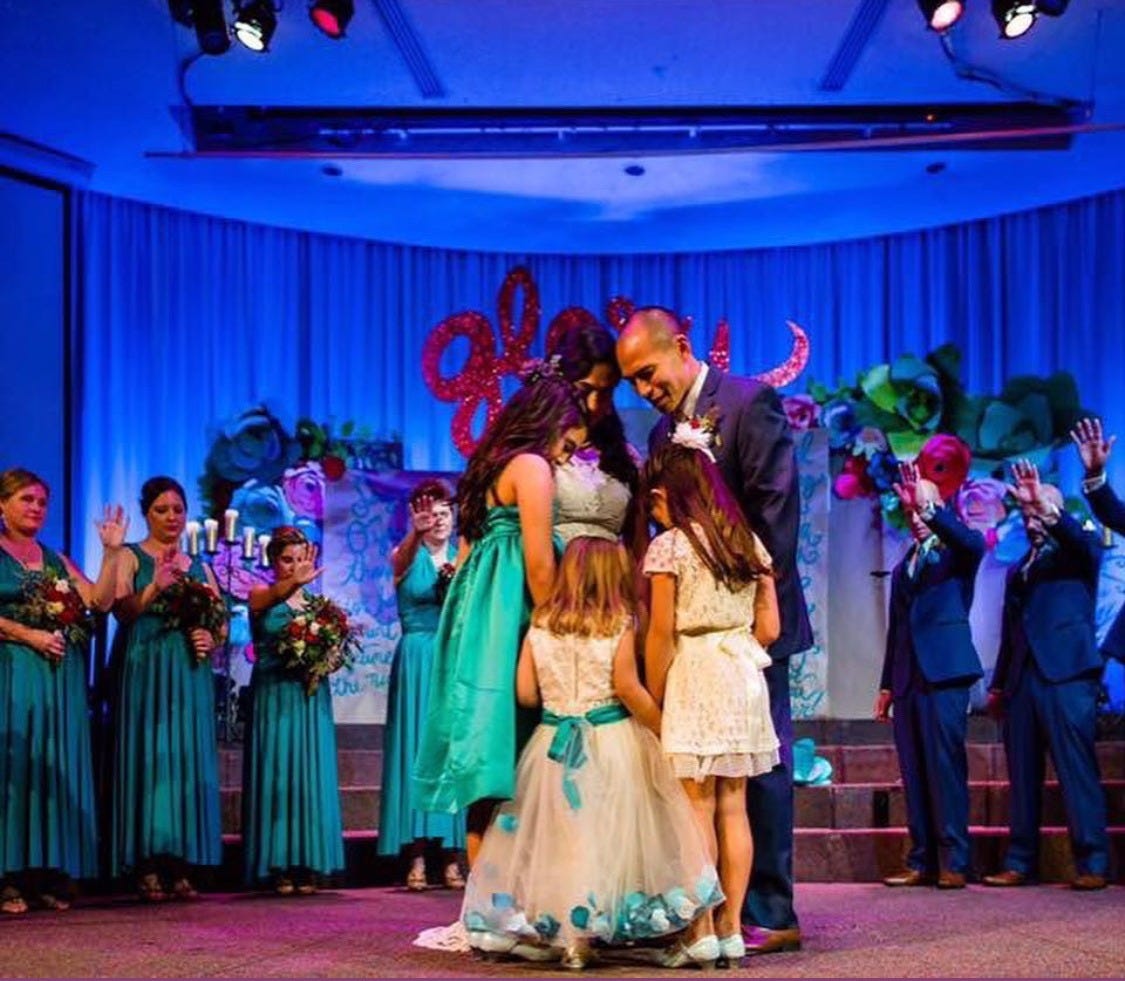 There wasn’t a dry eye in the sanctuary as more than 700 people gathered as our community of witnesses for this moment. My friend handcrafted a magnificent wooden sign that hung at the center of the stage above our heads, proclaiming the word “glory” in sparkling red letters. Like the sun-kissed petals on the roses in my bouquet, God’s redemption plan for our family was just beginning to unfold.